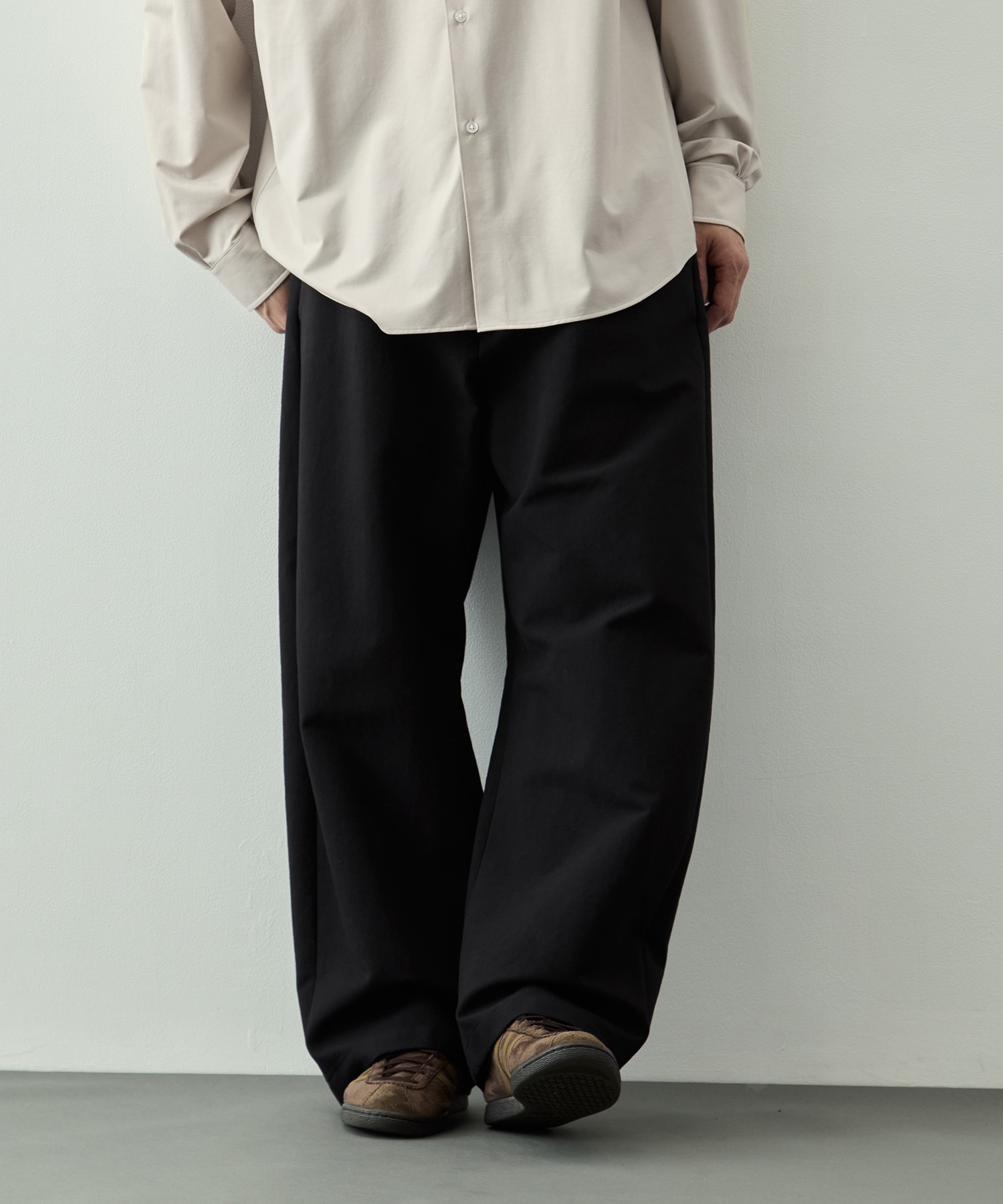 デザイン ウエストから裾にかけて緩やかな丸みを帯びたバルーンシルエット。 バレルシルエットとは異なるラインで、より柔らかな印象が特徴です。 バルキーな素材感が着用時のフォルムを美しくキープし、立体的なシルエットを演出。 肌当たりも柔らかく、抜群の穿き心地を実現しています。 極端に太すぎない絶妙なバランスで、程よいトレンド感も感じられる仕上がり。 バックシャーリング+ドローコードのイージー仕様で、ストレスフリーに快適に着用可能です。