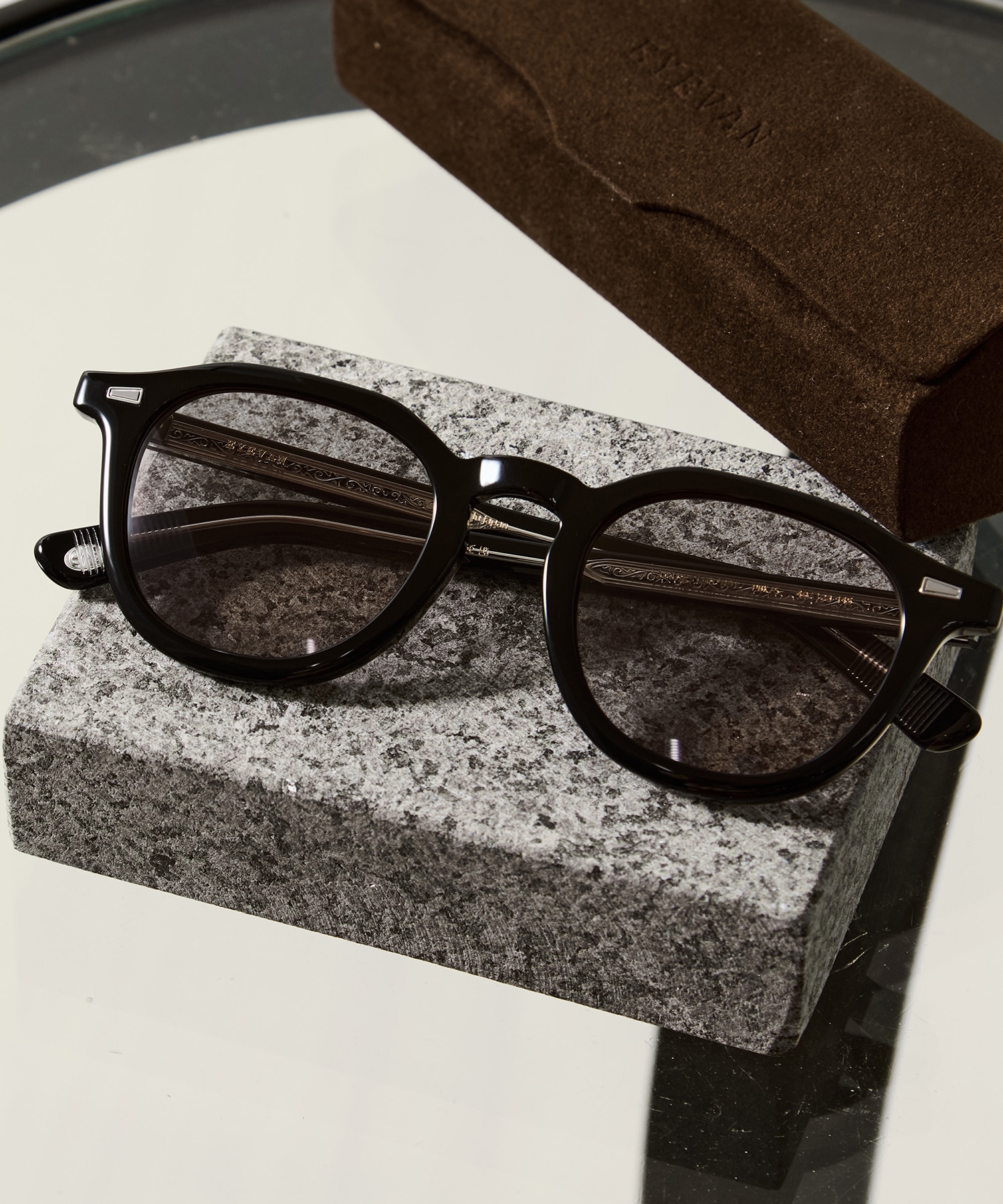 1950年代のフレンチヴィンテージをベースに、ウェリントンとクラウンパントの中間的なレンズシェイプをホーンリムに融合させた、2024SSシーズンモデル『Albedo』のリメイク。
