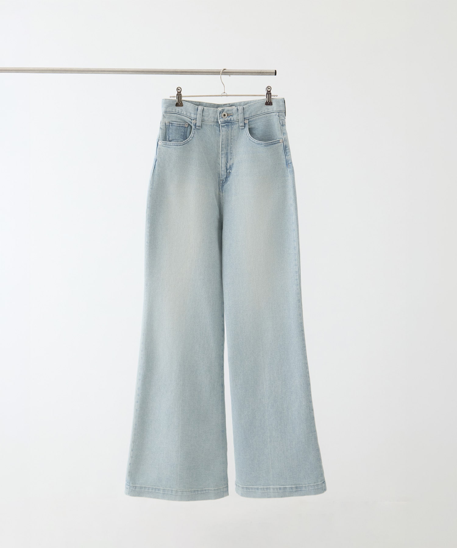 デザイン 11.3ozの程よい肉感と、縦落ちの表情を活かした本格フレアデニム。デニムの産地として名高い岡山で丁寧につくり上げました。 ハイライズで腰位置を高く設定し、裾のフレアラインが最も美しく映えるフルレングスに。 ヒールを合わせれば足元に自然なニュアンスが生まれる長めの丈感とセンタークリースの加工が縦のラインを強調。 すらりとした印象を描きます。 フラットシューズと合わせれば、ややルーズな抜け感のある佇まいに。 きれいめなスタイリングを軸に、装いの幅を広げる一本です。 素材 やわらかく理想的なベーシックデニム生地。 7×7番手の糸を使用し、縦糸はインディゴのロープ染色で丁寧に染め上げています。 芯まで染めきらないことで、着込むほどに美しい縦落ちが現れ、自然なエイジングを楽しめる仕上がりに。 糸本来のムラ感が、奥行きのある豊かな表情を生み出します。 デニムの産地として知られる広島県福山市で生産。確かな技術のもと、丁寧に織り上げました。 約11.3ozの程よい肉感で、通年着用しやすいバランスに設計。 さらにポリウレタンをブレンドすることで、身体にしなやかになじみ、ストレスの少ない穿き心地を実現しています。 ※店舗と在庫を共有しておりますので、受注確認メールが届いてもご注文のタイミングによりましては売り切れになる可能性がございますので、予めご了承ください。 ※商品の色味につきまして、撮影環境、お客様のお使いのPCのモニター環境により実際のカラーと画像の色味が違って見える場合が御座います。