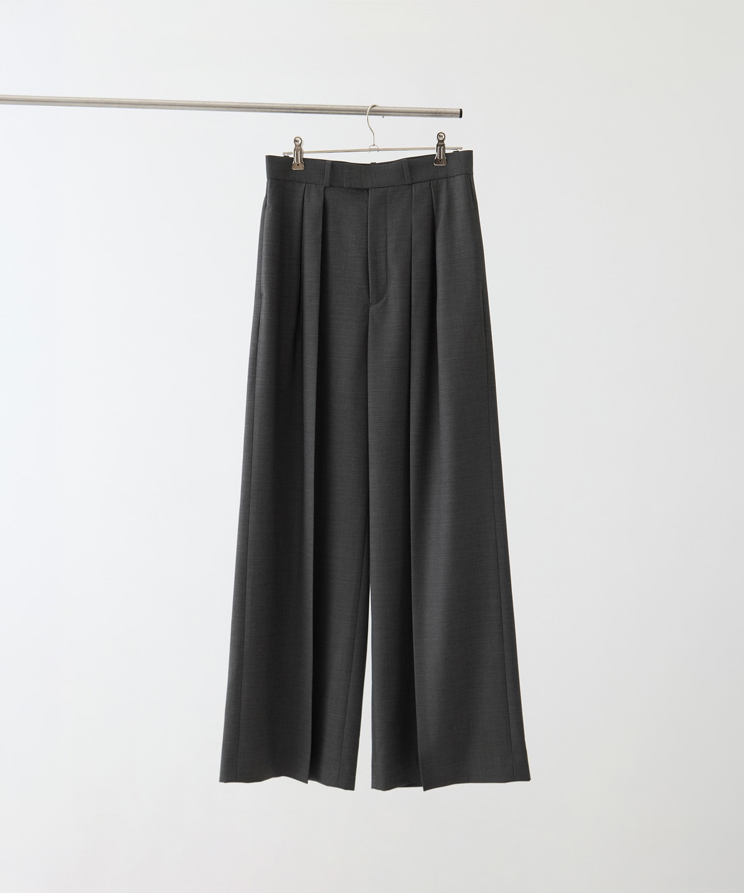 デザイン Super140’sウールの上品な落ち感を活かしたタックワイドパンツ。 太めに設計した裾巾が、大人らしい余裕のあるシルエットを描き、股下の縦にすっと落ちるラインで全体をすらりと整えます。 フロントタックが腰まわりにほどよいゆとりを生み、ボリュームを持たせながらも広がりすぎない、クリーンな印象に。 上質な素材感が装いを引き上げ、きれいめにもカジュアルにも自然に馴染む一本。 ワードローブの軸として、長く活躍するアイテムです。 素材 Super140’sウールを使用したバックサテン素材。 繊維表面の毛羽を抑えるスケールオフ加工を施すことで、クリアで上質な表情と、耐久性を両立しました。 さらにマシーンウォッシャブルにも対応した、実用性を備えたウール素材です。 バックサテンならではのなめらかな肌あたりも魅力。 また、仕立て映えを高めるためにポリエステルを5%ブレンド。 Super140’sウールの繊細さを活かしながら、程よいハリと美しいフォルムを保つ設計に仕上げた素材です。 ※店舗と在庫を共有しておりますので、受注確認メールが届いてもご注文のタイミングによりましては売り切れになる可能性がございますので、予めご了承ください。 ※商品の色味につきまして、撮影環境、お客様のお使いのPCのモニター環境により実際のカラーと画像の色味が違って見える場合が御座います。