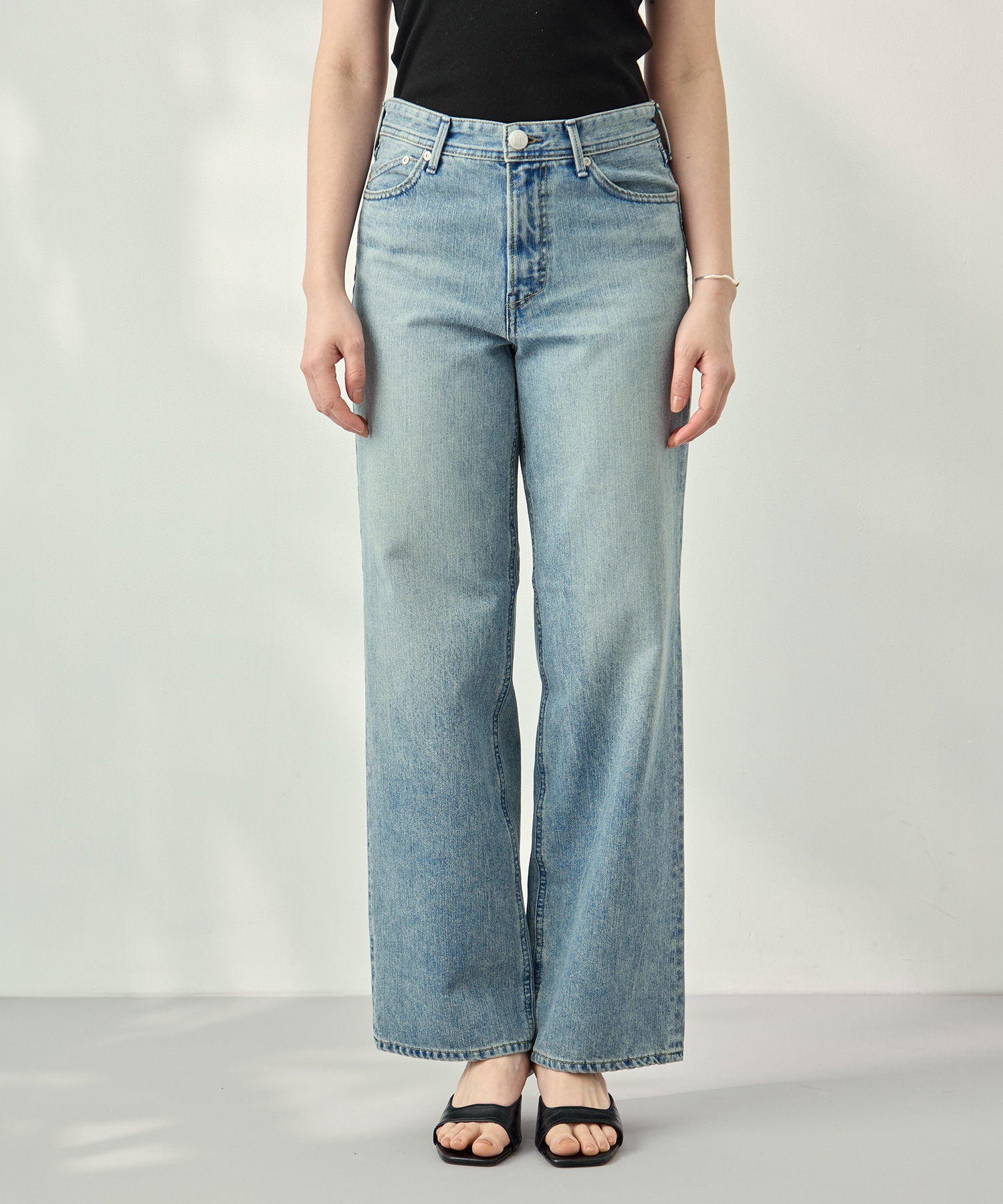 デザイン ミッドライズで腰まわりはすっきりとした履き心地。 太すぎず細すぎないストレートで、自然に脚がまっすぐ見えます。 すっきり見えるのに、窮屈さを感じにくいバランスです。 タテに少し伸びる生地なので、歩いたり座ったりもラク。 ヨコに伸びない分、ラインが崩れにくく、気になる部分もさりげなくカバーしてくれます。 見た目は綿100%のようなデニムらしい表情で、柔らかさもある穿き心地です。 古着っぽい自然な色落ちで、ほどよくこなれた印象。 加工も強すぎないので、ラフに履いても野暮ったくならず、すっきりまとまります。 カジュアルにもきれいめにも合わせやすく、一本あると着回しが効くタイプ。 デニムに慣れてる人はもちろん、最初の一本としても取り入れやすい仕上がりです。