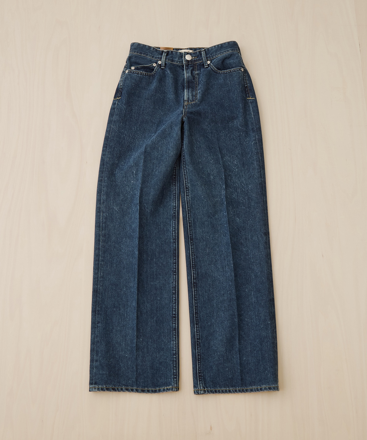タテ方向に伸びるTrick Denimが歩行をサポートし、美脚と快適さを両立。ヴィンテージブルーの深みが際立ち、きれいめにも映える万能な1本です。
