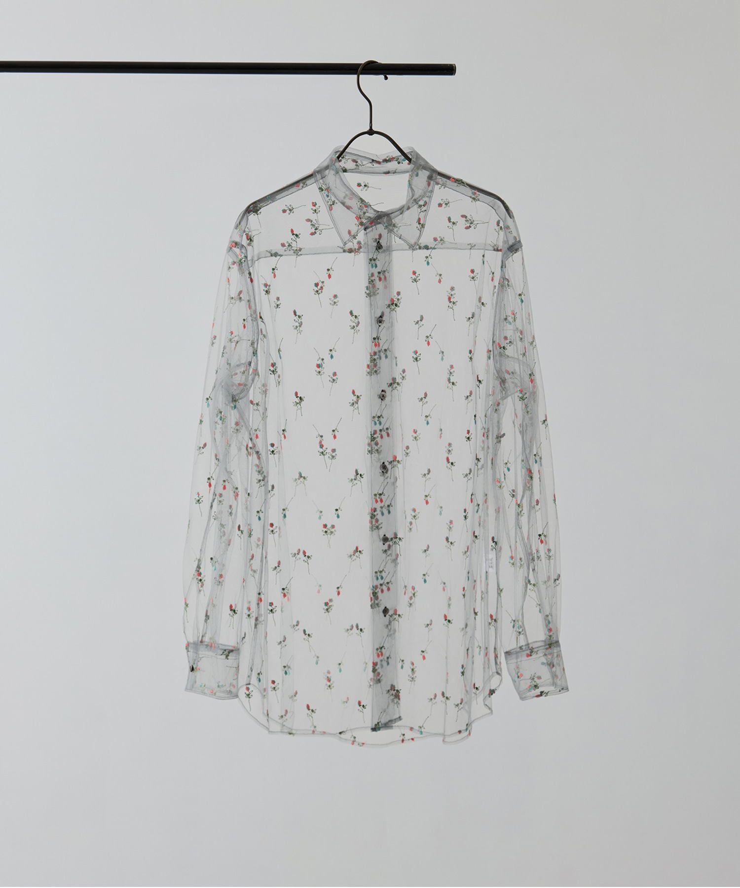 繊細な素材でおつくりしたレギュラーカラーシャツはチュール素材ならではのニュアンスが魅力のアイテムです。