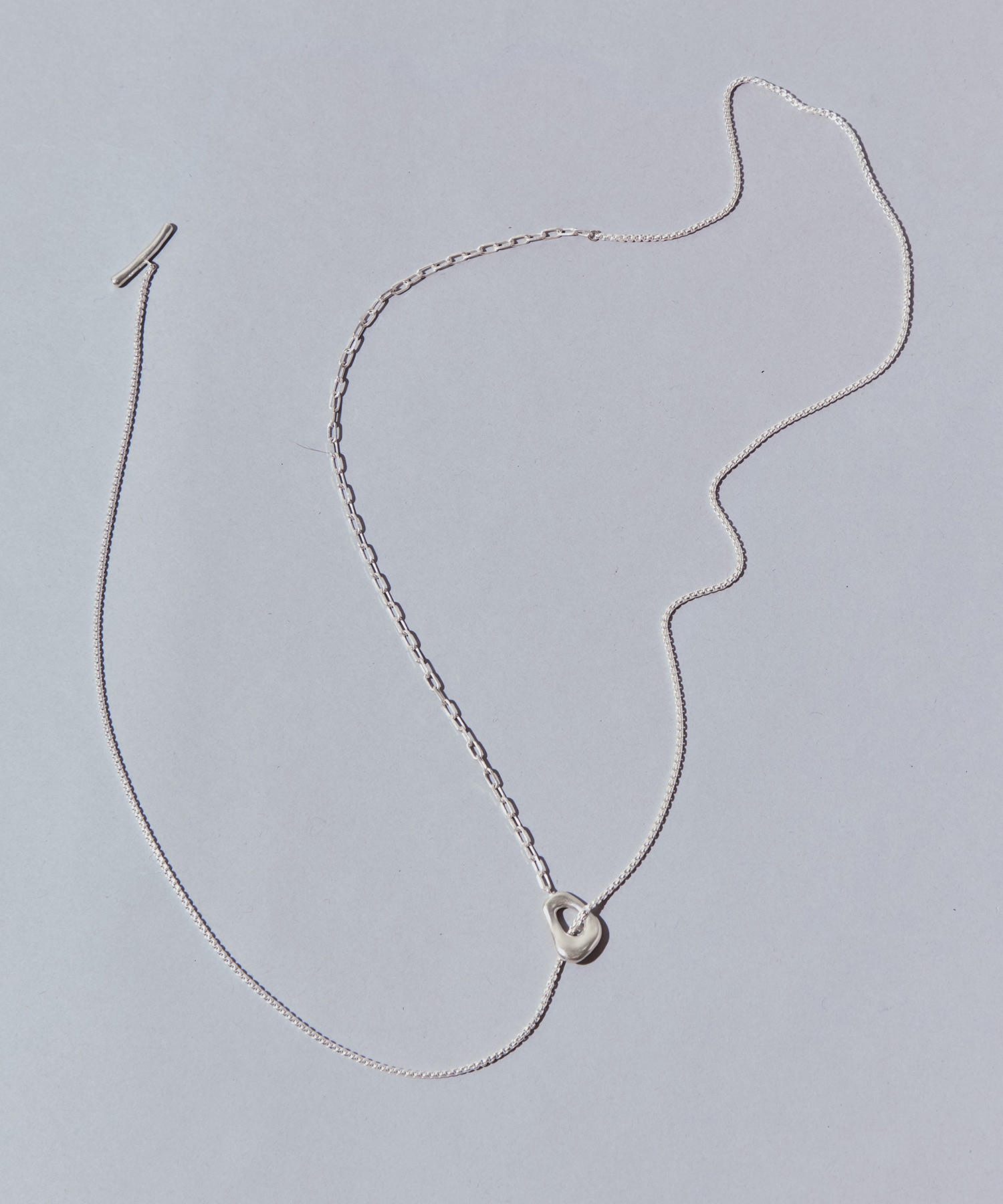 デザイン 2種類のチェーンとオリジナルパーツをあしらったポウムラリエット。 新しいマンテルとTバーは果実とヘタを連想させ個性が光るフォルムを描いています。 異なる2種類のチェーンを組み合わせ、十分に長さを持たせることで着用方法のバリエーションもUP。 一重、二重、Y字のほか、二重Y字と従来より全長を長くすることでより幅広く様々なバリエーションでご着用可能になりました。 シンプルな装いにも着用することでワンランク格上げするネックレスです。 ※こちらの商品は一つ一つ手作業で生産しておりますので1点1点の風合いが微妙に異なります。 ※silver925素材のため時間の経過に伴い変色いたします。風合いの変化と共にあなただけの表情を末永くお楽しみください。 ※デザインの特性上、多少のサイズの誤差がある場合がございます。予めご了承ください。 メーカー品番:ne-0066 -TEN.- TEN.(テン) は、日々のスタイリングにそっと寄り添うアクセサリーブランド。 その日の気分やインスピレーションに合わせて、自由に自分らしいスタイルを楽しめるアイテムを提案しています。 ひとつ身につけるだけで、少し華やかに、そして少し自信が持てる存在に。 TEN.は、アクセサリーを通して新しい自分との出会いを届けます。 ※店舗と在庫を共有しておりますので、受注確認メールが届いてもご注文のタイミングによりましては売り切れになる可能性がございますので、予めご了承ください。 ※商品の色味につきまして、撮影環境、お客様のお使いのPCのモニター環境により実際のカラーと画像の色味が違って見える場合が御座います。